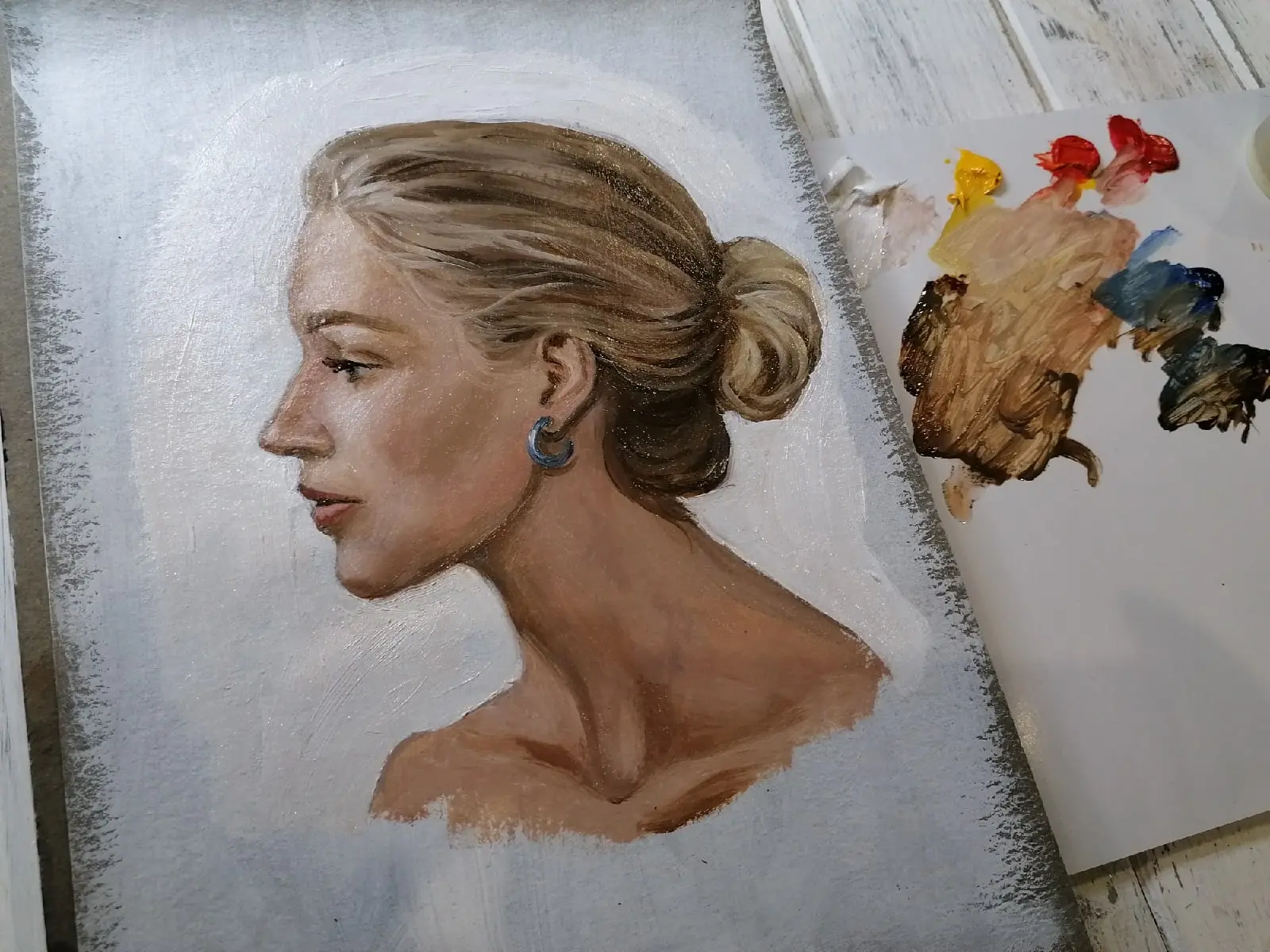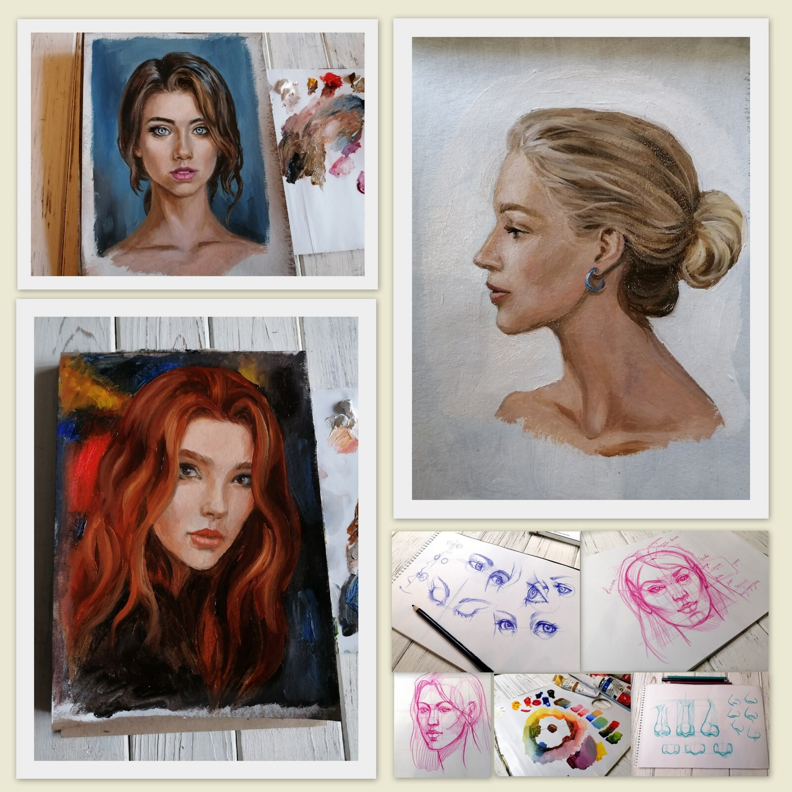 Художник помогает, подсказывает на каждом этапе. В финале пишем портрет онлайн вместе, на индивидуальном уроке.