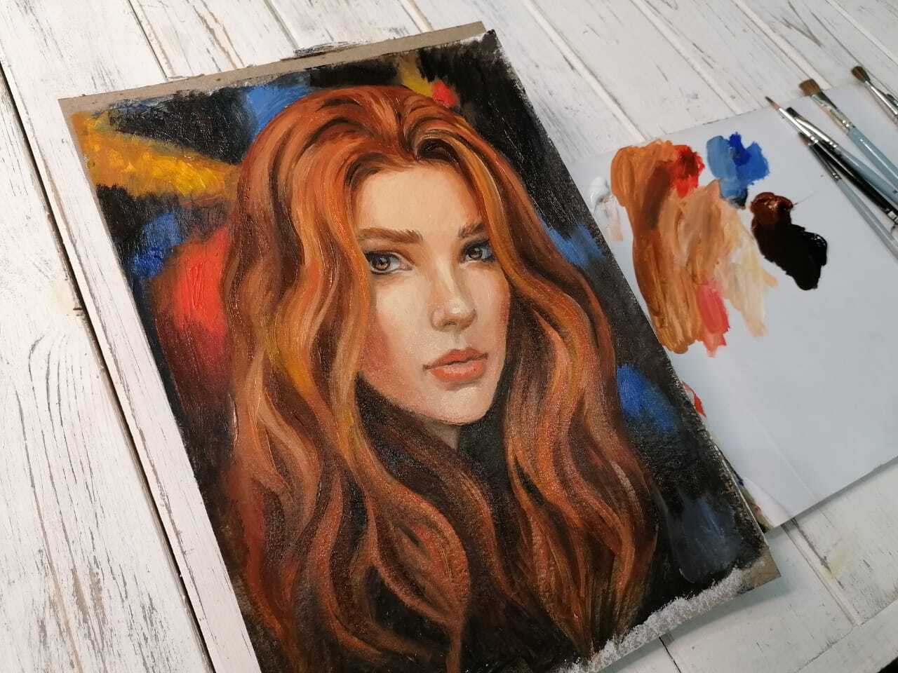 Художник помогает, подсказывает на каждом этапе. В финале пишем портрет онлайн вместе, на индивидуальном уроке.